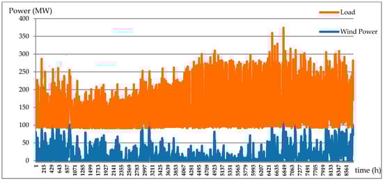 Since the uncertainties of wind power will lead to large errors in the results of optimally allocating ESSs, a power forecasting method is always used to predict power demand, spot price, and outputs of renewable energy and helps decision-makers determine an ESS’s capacity more accurately. A large amount of literature [,,,] related to power prediction has been developed in recent years. The authors of [,,] utilized artificial neural network (ANN) approaches for the optimum estimation and forecasting of renewable energy consumption by considering environmental and economic factors. Physical models were set up to predict solar irradiance and the output power of photovoltaic (PV) generation, which are based on numerical weather predictions and satellite images [,]. Bacher et al. developed a statistical approach based on a data-driven formulation using historical measured data to forecast renewable energy time series [].