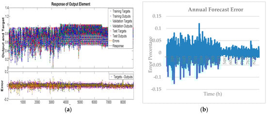 (a) Simulation result of NARX-BPNN; (b) Annual forecast error of NARX-BPNN.