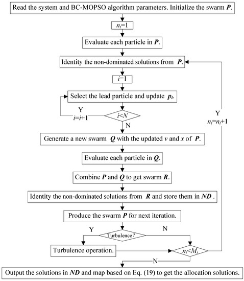 Solving the multi-objective optimization of allocating HESS is to apply BC-MPSO algorithm to identify the optimal allocation solution(s). The detailed procedure of the algorithm can be described as follows and its application can be illustrated in Figure 4.