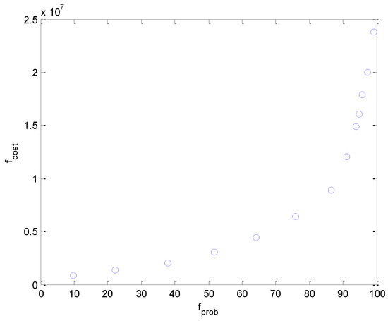 The wind power is illustrated in Figure 6 that supposes it is of normal distribution with a mean of 50 MW and a variance of 15 MW. Apply BC-MOPSO to determine the rated capacity and power of each ESS, and the configuration solutions and their corresponding objective-function values are listed in Table 3. The distribution of Pareto solutions in the objective-space are demonstrated in Figure 5.