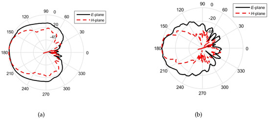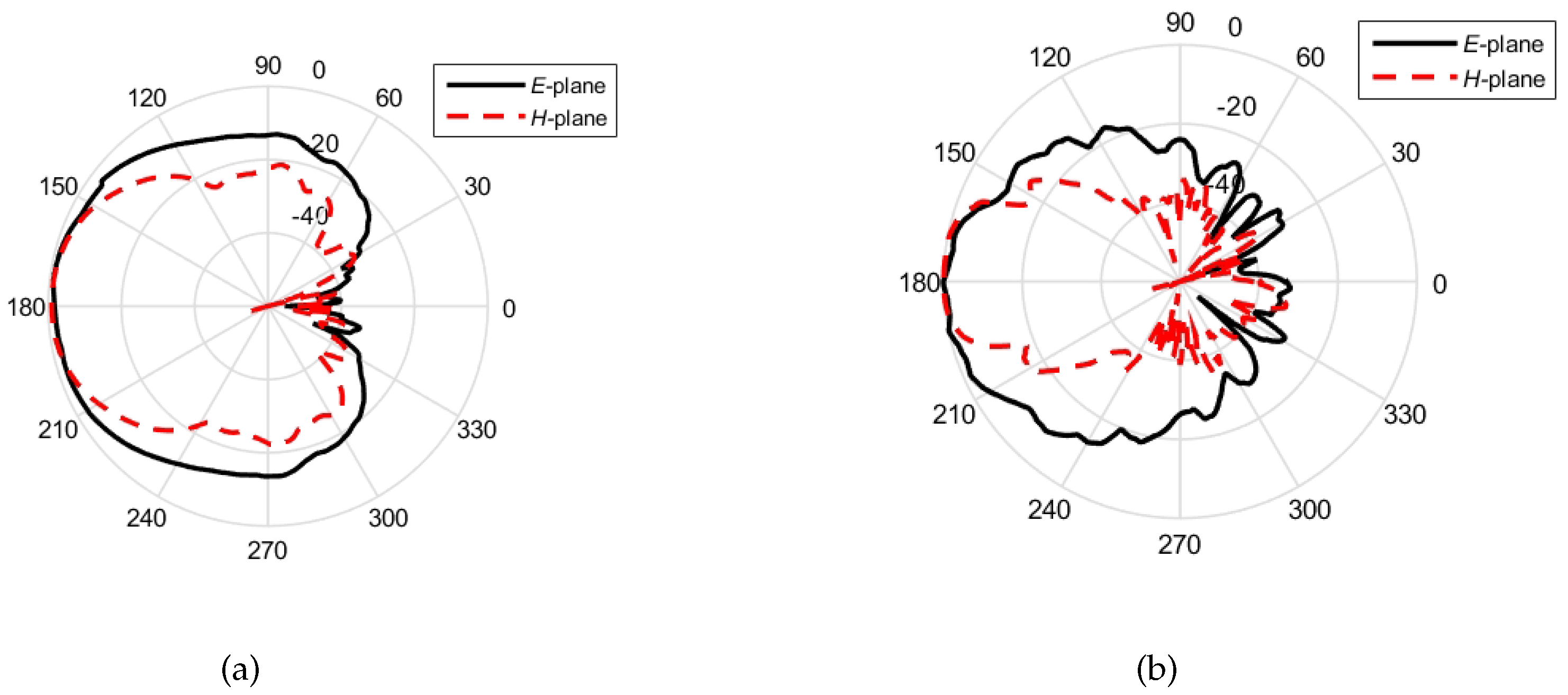 (color online) Radiation patterns of antennas at (a) 3.6 GHz; and (b) 14.6 GHz.