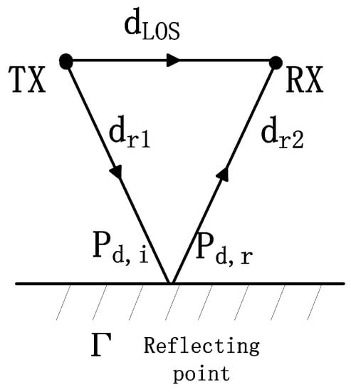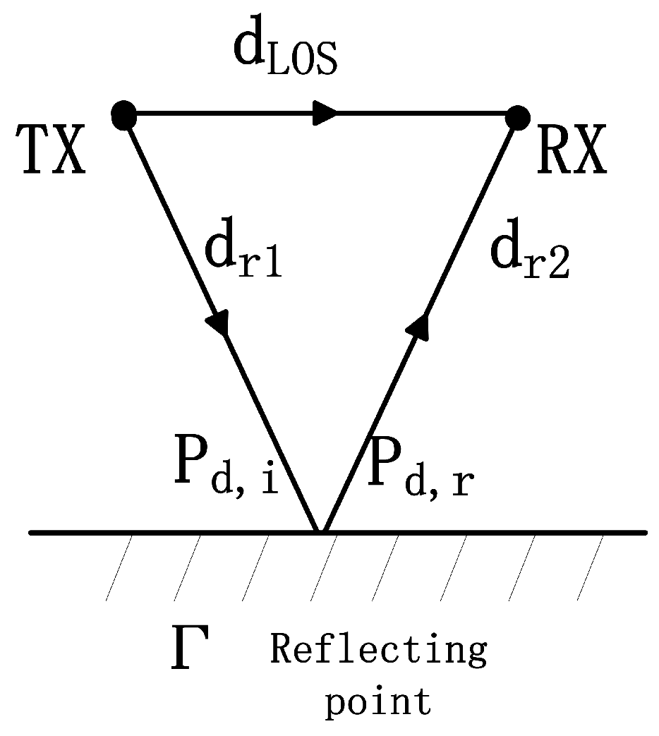 where (Γ) is the reflection coefficient, is the distance between the TX and the reflecting point, and is the distance between the RX and the reflecting point. The power ratio between the LOS component and reflected component is