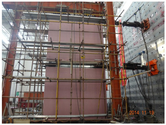 In recent decades, cold-formed steel (CFS) shear wall systems are considered to be one of the most feasible approaches for constructing residential and commercial low-rise and mid-rise buildings because this system has numerous benefits such as environmental-friendly and recyclable materials, lightweightness, high performance, cost-effectiveness, dimensional modularity and stability, and convenience for construction. CFS products have the highest overall recycling rate of 66% [1]. A series of studies have been performed on CFS shear walls [2], including board-sheathed CFS shear walls [3,4,5], steel-sheathed CFS shear walls [6], and CFS shear walls sheathed with double-layer wallboards [7]. These shear wall systems were usually used in low-rise buildings, however, such systems are inadequate for mid-rise buildings, because only wallboards supply lateral-resistance. Therefore, researchers have looked for more methods of strengthening such shear walls, such as adding steel straps and trusses to the wall [8]. Strap-braced CFS walls were proposed by Mirzaei et al. [9] to verify the seismic design provisions of the American Iron and Steel Institute (AISI). A series of cyclic tests on CFS diagonal strap-braced stud walls was performed by Fiorino et al. [10]. Knee-braced CFS shear walls were introduced by Zeynalian and Ronagh [11]; both cyclic tests and numerical analyses were performed to study their seismic performance. In addition, framed stud walls with strap braces and steel sheathing [12] and other composite walls were investigated sequentially.