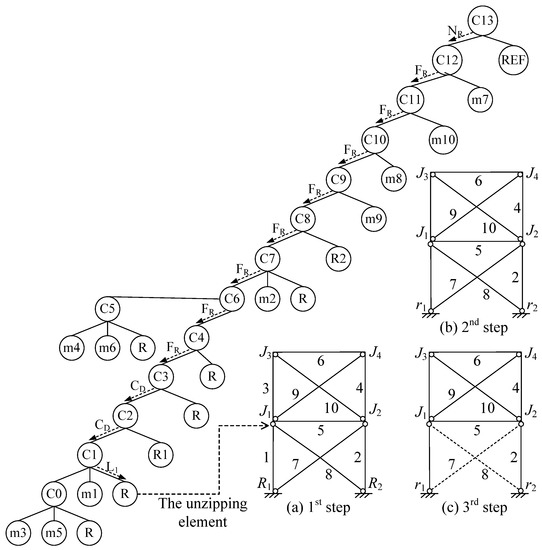 Structural vulnerability theory [26,27,28,29] is a theory focused on the quality of the structural form, and is able to identify the weakest part of a structure. This theory evaluates the quality of structural form through the value of well-formedness, and two main processes are contained in structural vulnerability analysis, including the clustering process, in which the hierarchical relationship model of the structure can be established according to clustering criteria, and the unzipping process, in which the possible failure modes of the structure can be identified based on unzipping rules.