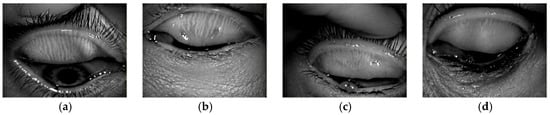 Image segmentation segments the region of interest in the image to provide a reliable basis for subsequent analysis and processing []. Segmentation quality directly affects subsequent image recognition. The eyelid part is of great significance in the diagnosis of meibomian gland morphology. Using the differences of textures between the eyelid region and other regions, and combining morphological and local entropy filtering, we designed a segmentation method based on texture filtering. The local entropy is defined as an entropy operation on an area of centered on the selected pixel, and the meibomian gland image was filtered using local entropy to obtain the texture image. Local entropy calculation expressions are shown as follows: