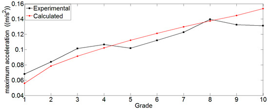 The velocities of the steel ball in different loading grades can be calculated by the theorem of kinetic energy (shown in Table 2). Therefore, the equation of motion can be solved and the simulated peak values of the acceleration response of the structure in different loading grades can be obtained.