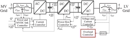 This paper is structured as follows: Section 2 gives an overview of the ST concept and control, including the proposed overload controller; Section 3 describes the grid simulated in PSCAD; the simulation results of the grid are shown in Section 4; and the experimental verification is performed in Section 5. Section 6 is dedicated to the conclusions.