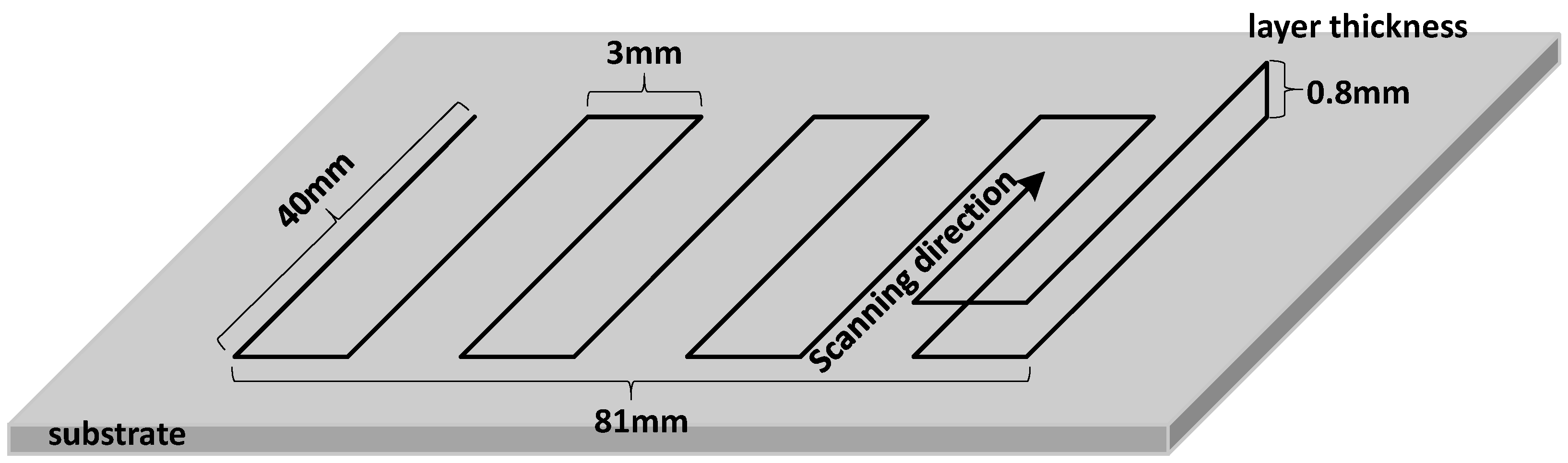For convenience, a cuboid block with the size of 81 mm × 40 mm × 40 mm was fabricated for the microstructure observation and mechanical properties tests. The tool-path of the cuboid block is shown in Figure 4.
