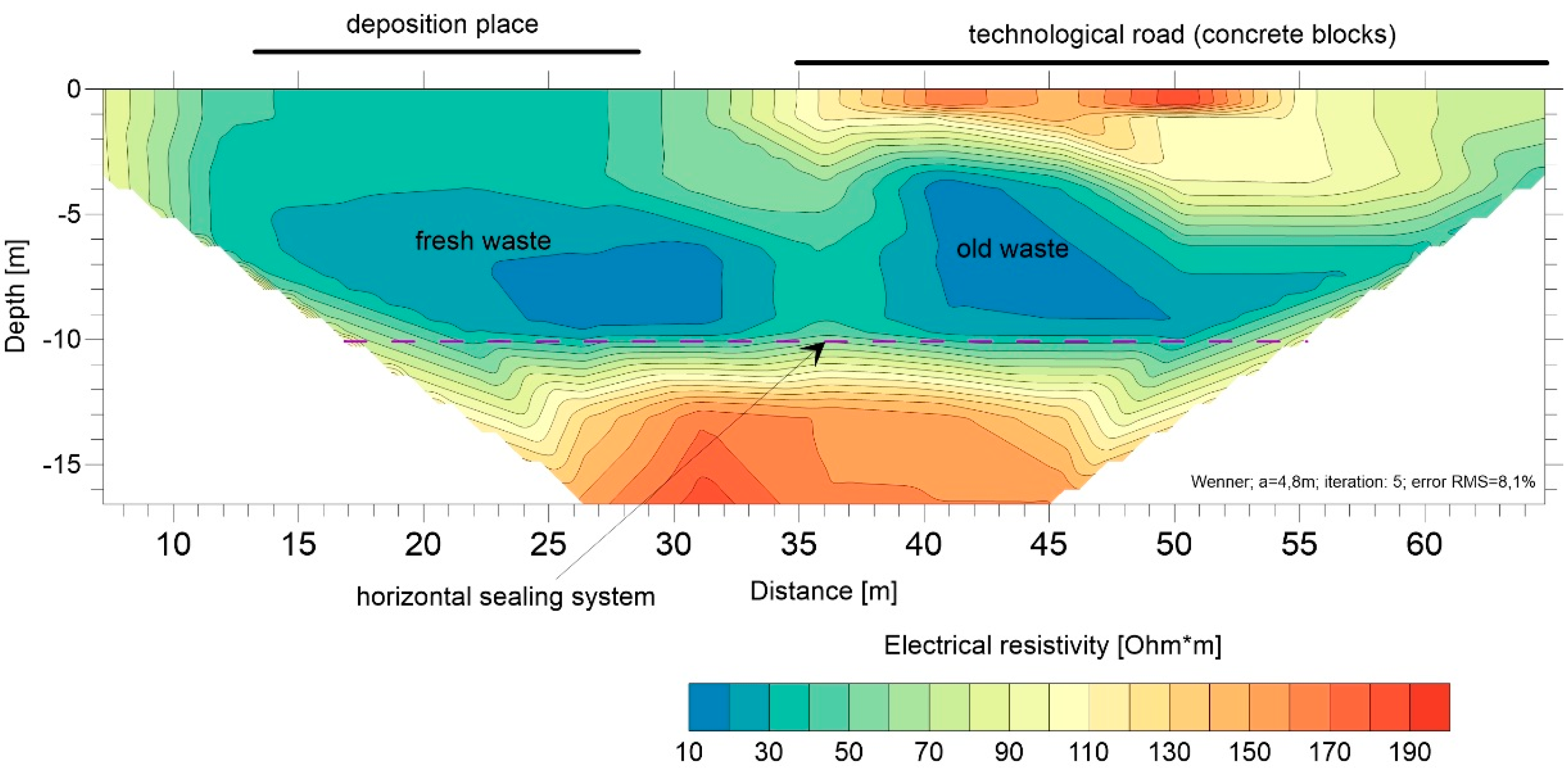 The electrical resistivity cross-section of waste disposal with a bottom sealing system.