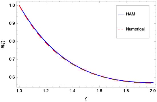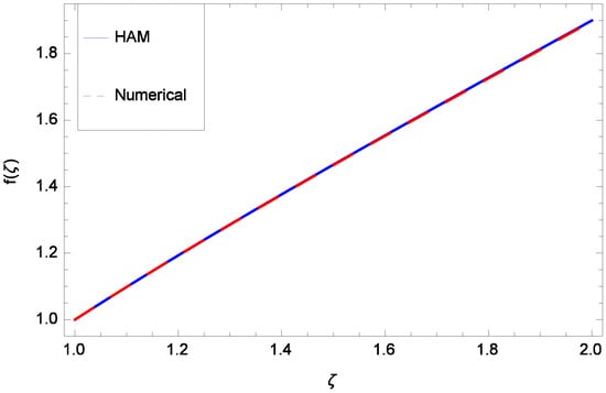 f(ζ, p) becomes f(ζ) to f(ζ) when p assumes the values from 0 to 1. Similarly, θ(ζ, p) becomes θ(ζ) to θ(ζ) when p assumes the values from 0 to 1. Using Taylor series expansion and Equations (45) and (46), one obtains
