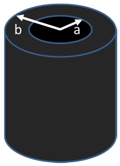 where m is the rotor mass and r is the outer radius. For a hollow cylinder flywheel of outer radius b and inner radius a, as shown in Figure 2, the moment of inertia is: