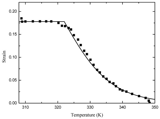 26] (Figure 5c), which are concerned with the strain recovery effect of a SMP sample in a heating process from 320 K to 350 K with the pre-strain 0.164.