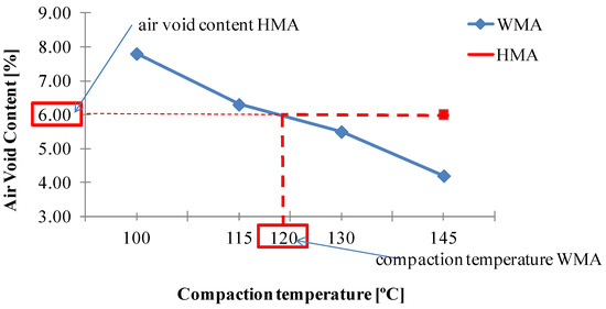 In the process of designing WMA, it is important to determine the mix asphalt production and compaction temperature. A method of determining appropriate compaction temperature involves a comparison of the volumetric density or air void content in compacted WMA samples and reference HMA (Figure 1). This method can be used for all WMA technologies.
