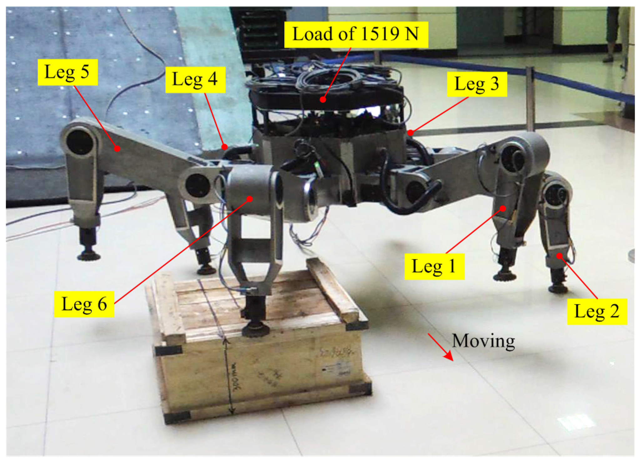 - Zhuang, H.C.; Gao, H.B.; Deng, Z.Q. Analysis method of articulated torque of heavy-duty six-legged robot under its quadrangular gait. Appl. Sci. 2016, 6, 1–21. [Google Scholar] [CrossRef]