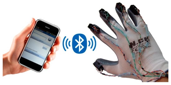 In daily life, the interlocutor of a deaf-blind individual can send a message or idea by choosing one of the three selection modes included in the mobile application: an icon menu, typing, or voice recognition. The message is transmitted via the wireless link to the efferent HMI, i.e., the glove. The messages are coded in an abstract representation [] and delivered on the fingers by a stimulation pattern.