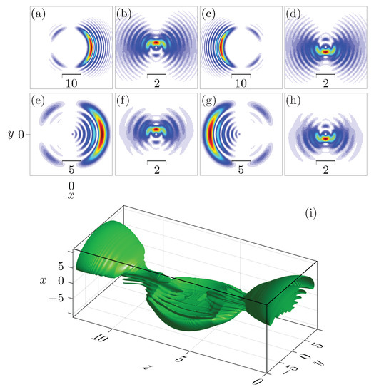 - Panagiotopoulos, P.; Papazoglou, D.G.; Couairon, A.; Tzortzakis, S. Sharply autofocused ring-Airy beams transforming into non-linear intense light bullets. Nat. Commun. 2013, 4, 2622. [Google Scholar] [CrossRef] [PubMed]
