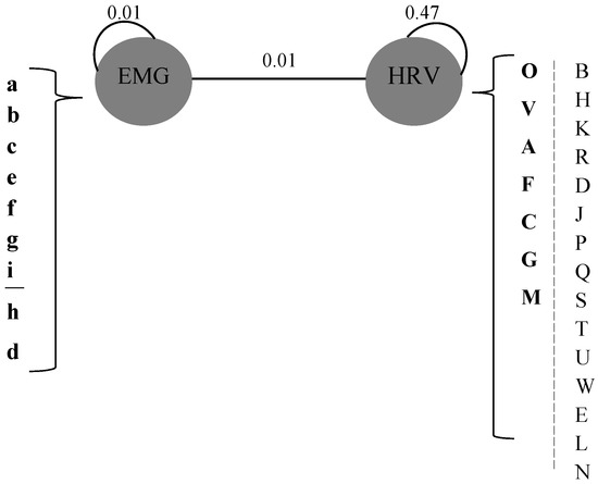 Figure 9 illustrates the modalities, performance, and diversity of the features. All 32 features are divided into two modalities according to the corresponding sensor types which are EMG and ECG. The feature performance in each of the EMG and ECG physiological signals is sorted in decreasing order. 15 features with a bold font demonstrated in the figure is selected for further process and is denoted as the top features. While a number above the horizontal link between two modalities is denoted as the diversity between the two feature sets. Besides, a number above the curve within a node of the modality is the average of a feature set diversity. Generally, a better fusion performance is produced when the diversity between two modalities is larger [46]. Apart from that, better individual feature performance also provides a better combination result [46]. However, only two modalities were utilized in this work but the comparison of the diversity of the two modalities is not required. In this work, the diversity between EMG and HRV generates a better diversity of a feature set and the diversity between two feature sets. Hence, a better combination performance can be achieved.