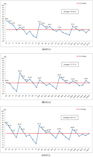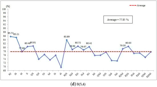 Moreover, in Figure 11a, the average correct rate is 78.36% and it possesses the top-12 combined features which are IP, IU, IPU, Ic, IPc, IPUc, IUc, PU, IPd, IPUd, Pc, and PUc. Next, in Figure 11b, the average correct rate is 77.75% and it possesses the top-12 combined features which are HR, HRa, Ha, Ra, HRh, HER, HRah, EHRa, Hh, EH, Hah, and EHRh. Then, in Figure 11c, the average correct rate is 80.34% and it possesses the top-12 combined features which are HI. HIJ, IJ, HJ, HIc, HIJc, IJc, Ic, HJc, HIJd, Hc, and HId. Lastly, in Figure 11d, the average correct rate is 77.85% and it possesses the top-12 combined features which are OV, IQ, IS, IQS, QS, IQi, IQSi, Ii, ISi, IQSd, IQd, ISd, and Id. Thus, all the four 5-feature sets (B) have their own top-12 combined features.