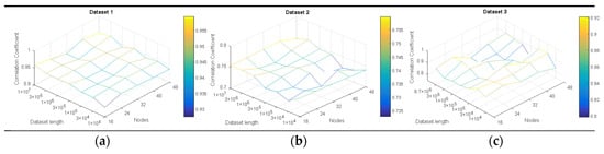 Correlation coefficient on former three datasets. (a) Dataset 1; (b) Dataset 2; (c) Dataset 3.