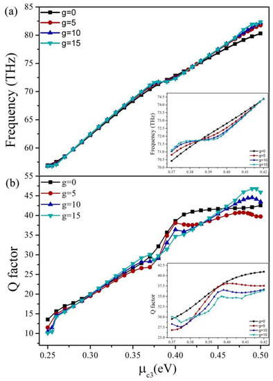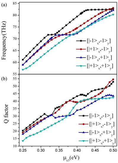 - Huang, Y.X.; Zhao, J.; Qiu, W.B.; Lin, S.X.; Chen, H.B.; Wang, J.X.; Kan, Q.; Pan, J.Q. Investigation of the tunable plasmonic whispering gallery mode properties for graphene monolayer nanodisk cavities. Optik 2016, 127, 5591–5596. [Google Scholar] [CrossRef]