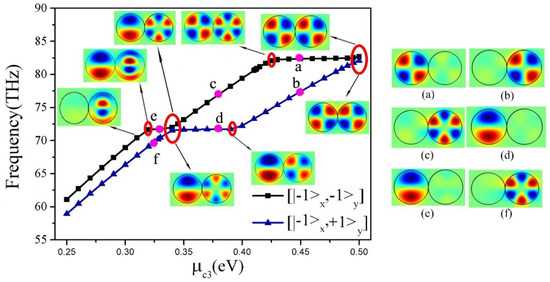 Chen, H.; Qiu, W.; Qiu, P.; Ren, J.; Lin, Z.; Wang, J.-X.; Kan, Q.; Pan, J.-Q. Mode Coupling Properties of the Plasmonic Dimers Composed of Graphene Nanodisks. Appl. Sci. 2017, 7, 359. https://doi.org/10.3390/app7040359