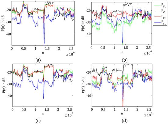 The evaluation allows the comparison of front with surround channel power (see Figure 7). For reasons of clarity only the left surround channel power is used in the following figures.