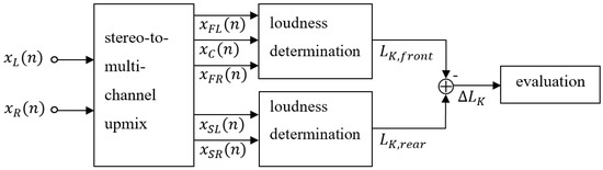 While multichannel loudspeaker systems for home and car entertainment are becoming increasingly popular these days, the number of available multichannel audio recordings is still limited (note that multichannel audio recordings and mixed multichannel audio is meant subsequently). In contrast to movies on DVD or Blu-ray, the majority of audio recordings are only obtainable in the two-channel stereo format. In addition, the main content of digital radio and television and also the increasing significant streaming services for music and movies are only obtainable in the two-channel stereo format, too. So, it can be noted that there is a low availability of multichannel audio records. That is why a system is worthwhile, which extends an original stereo audio signal for playback over a multichannel loudspeaker system. As a result, the spatial quality and the listening experience can be enhanced compared with the pure stereo playback. For this reason, there is wide scholarly interest in novel stereo-to-multichannel upmix algorithms, e.g., [1,2,3,4,5] but there are many more recent publications on this topic. In order to determine the quality of such upmix algorithms, subjective listening tests were typically used [6,7,8]. Usher [6] presented specific design criteria for stereo-to-multichannel upmix algorithms to enhance spatial sound quality. He used formal listening tests for subjective evaluation of the design criteria according to [9], where three general sound quality issues for the evaluation of multichannel audio systems were defined. Choisel and Wickelmaier [7] used eight selected spatial attributes for sound quality evaluation in order to compare upmix algorithms. They derived a set of objectives measures from sound field analysis to predict auditory attributes. Barry and Kearney [8] used subjective listening tests for the assessment of source separation-based upmixing algorithms. In addition, they used objective testing to measure the errors which could theoretically occur in source separation algorithms.