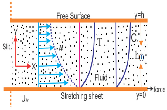 is the Stream function which is defined as: , . is Non-dimensional film thickness and is described as [29,30].