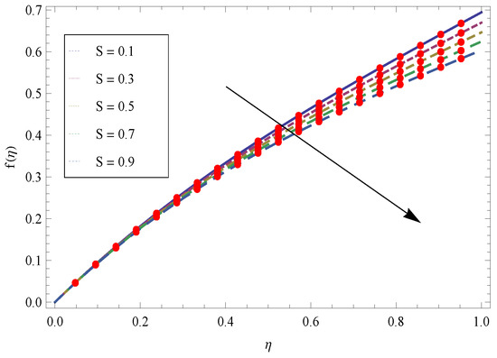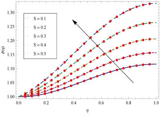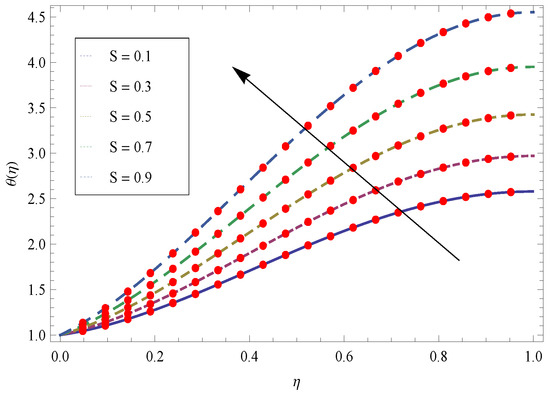 Variations in the Temperature gradient for different values of S, when h = −0.8, , , .