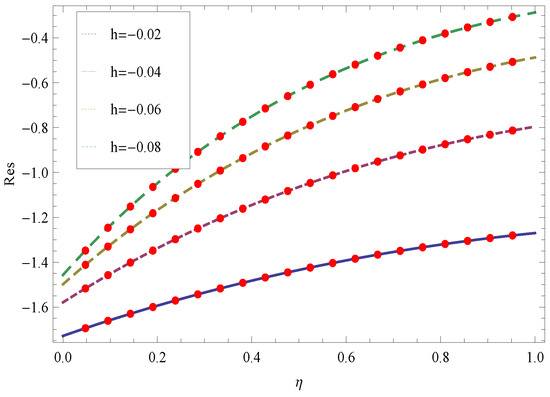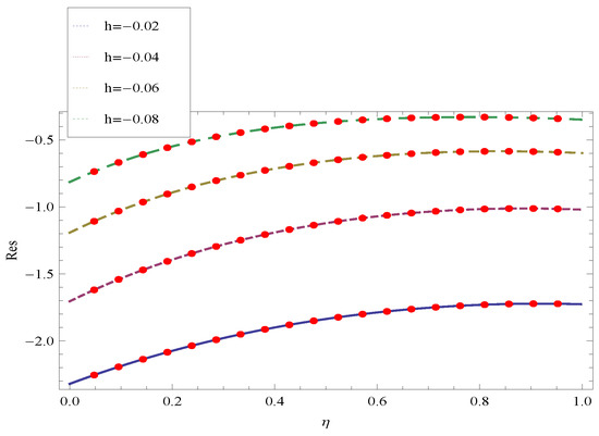 Illustrates h curves of the residuals for the velocity profile , when = 0.6, S = 0.6, Kr = 0.4, , Ec = 0.4, Nb = 0.6, Nt = 0.5, Sc = 0.5, .