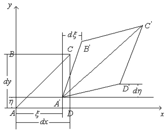 A complete object can be seen as a combination of many small parts, and each part interacts with the others. Take one part, , for analysis. When it is subjected to external stress, the body part will bear the effect of other bodies around it. The force includes a normal stress perpendicular to the surface of the action and a shear stress parallel to it. Figure 3 shows the stress analysis of the small body element.
