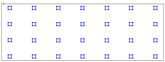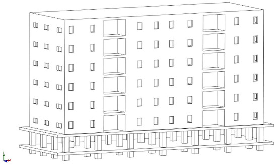 The model is a typical residence and the size of the frame column of Figure 4 is 0.8 m × 0.8 m. The horizontal separation between columns is 6 m, while the longitudinal distance is 4 m. The total area of the basement is 560 m2.