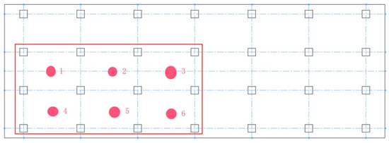The placement of the transformer is critical to the transmission of vibration. In practice, the transformer is usually placed at the basement. Taking the symmetry of the basement structure into account, only six typical areas in Figure 8 need to be analyzed.