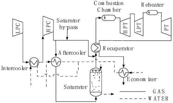 - Nakhamkin, M.; Swensen, E.; Wilson, J.M.; Gaul, G.; Polsky, M. The Cascaded Humidified Advanced Turbine (CHAT). J. Eng. Gas Turbines Power 1996, 118, 565–571. [Google Scholar] [CrossRef]