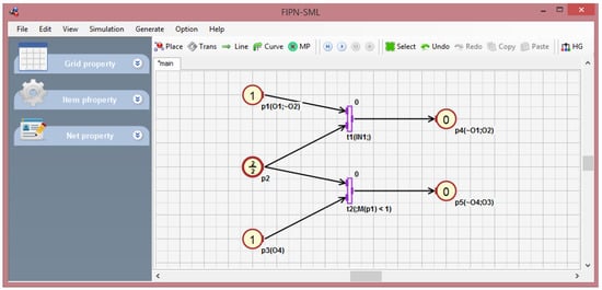 In this subsection, all functions that belong to the program model of the FIPN are presented. These functions are created based on Definitions 2 and 3. They specify some principles of model operation and can be divided into four groups: