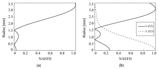 NAEFD radial profile of 7 mm galvanized steel wire. (a) Mode at 700 kHz; (b) Modes and at 790 kHz.