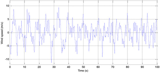 Stochastic wind load is generated from the Davenport spectrum to further verify the effectiveness of the devices. The AR method is utilized here for stochastic wind load generation. The time-history of the generated wind speed and the responses along the long-axis on the tower top and mast top are shown Figure 9 and Figure 10 and Table 5. The PTMD still observed similar control efficiency, not much better than that of the TMD, but the control efficiency is better than the typhoon excitation cases. Both of them are capable of reducing the peak and RMS responses by 57.79% and 49.65%, respectively.