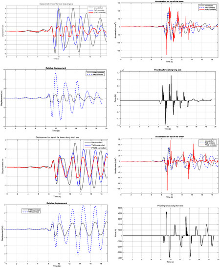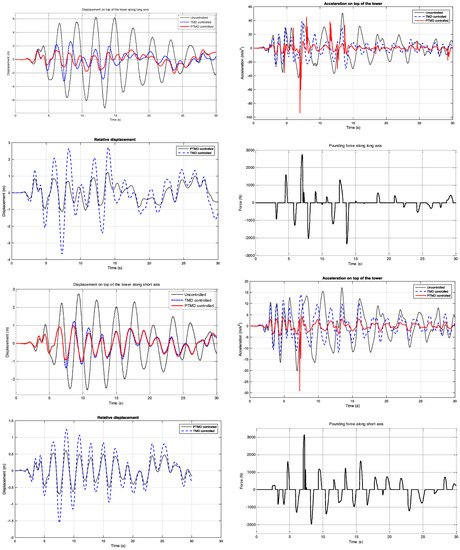 - Lin, W.; Lin, Y.; Song, G.; Li, J. Multiple Pounding Tuned Mass Damper (MPTMD) control on benchmark tower subjected to earthquake excitations. Earthq. Struct. 2016, 11, 1123–1141. [Google Scholar]