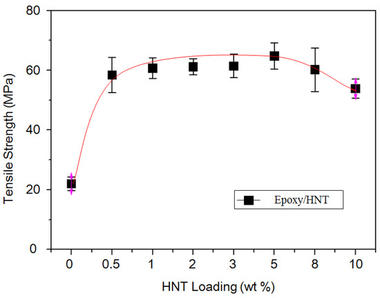 Comparison of tensile strength of HNT added epoxy with HNT content.