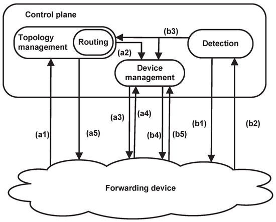 - McKeown, N.; Anderson, T.; Balakrishnan, H.; Parulkar, G.; Peterson, L.; Rexford, J.; Shenker, S.; Turner, J. OpenFlow: Enabling innovation in campus networks. ACM SIGCOMM Comput. Commun. Rev. 2008, 38, 69–74. [Google Scholar] [CrossRef]