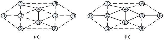 Looking at the time complexity of Algorithm 1, the complexity of the Dijkstra algorithm is known as [19]; then the complexity of function is equal to the Dijkstra’s. The maximum complexity of function and DistanceTopology are and , respectively. Thus, the complexity of Algorithm 1 is .