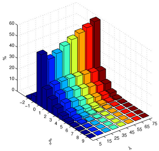 The distribution of the increased propagation delay for the topology set with .