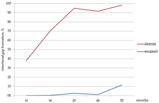 The quality assessment of composite restorations is based on the evaluation of functional, biological, and esthetic criteria [61]. It is also recognized that restoration margins should be sealed or intact. The question of what degree of interfacial bond failure is “clinically acceptable” is still open for discussion. From this point of view, we believe that development over time for each individual case must be a focus of consideration as interfacial gap is not just like another. To date, nobody has reliably assessed and estimated these individual dynamics under clinical conditions.