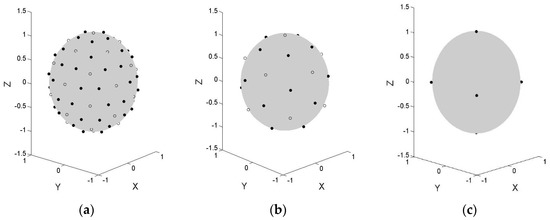The points on the sphere that are closest to the vertices of each polyhedron and the centers of polygons are computed with the Euclidian distance as Equations (5) and (6). The points that are the closest to the vertices are defined as and the points that are the closest to the centers are defined as .