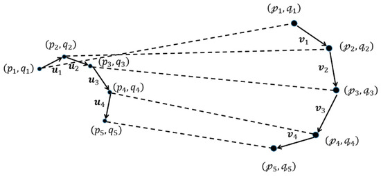) and . The keypoints are connected one by one in ascending order of as shown in Figure 10. Then, for each group of keypoints, vectors are generated to represent the keypoint’s shape.