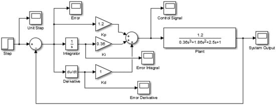 The Proportional-Integral-Derivative (PID)-controlled system in Simulink.