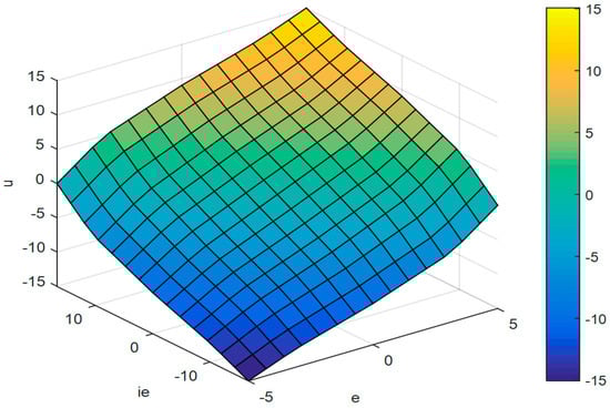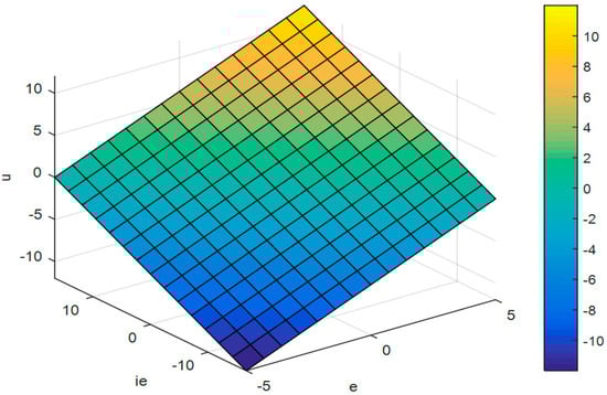 Moon [] revealed that when a PI controller is given, an FLC output is identical to that of the PI controller by using specified fuzzy logic operations. However, Moon’s design is limited to PI controllers, and the design procedure is not clear enough. Several studies have investigated fuzzy PID controller structures, by taking different combinations of the fuzzy PID structural elements [,,]. This involves a large number of parameters in defining the fuzzy rule base. Manikandan et al. [] presented a design for an equivalent fuzzy PID controller from the conventional PID controller, but the tuning procedure was too complicated and the resulting FLC was not purely linear according to the control surface view of the study. Therefore, the equivalence problem between different systems is very crucial to many research fields [].