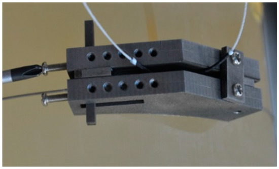 If the fiber packaged in the FBG strain hoop sensor is not tightened under working conditions, there may be no wavelength variation when pipeline leakage happens during its service. Therefore, a pre-tension mechanism (presented in Figure 3) was developed to load pre-stressing to the fiber and fix the FBG strain hoop sensor simultaneously. In practical application, the wavelength variation caused by the pre-tension system is recommended to be restricted under 1 nm so that the FBG will not be easily destroyed during testing.