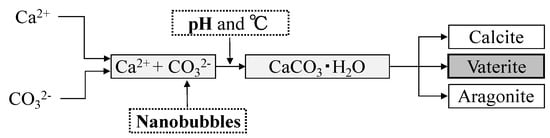 - Matsumoto, M. Polymorph control of calcium carbonate by reactive crystallization using microbubble technique. Chem. Eng. Res. Des. 2010, 88, 1624–1630. [Google Scholar] [CrossRef]