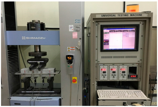 The production of the specimen for the flexural behavior characteristics test and toughness assessment was based on “Flexural Performance Testing Method for Fiber-reinforced Concrete” in Korean standard (KS F 2566:2014) [10] The specimen section was square-shaped, and the length of each side was set to 10 mm as the length of fiber did not exceed 35 mm. As a result, three 100 × 100 × 400 mm specimens for all types were created. For the accurate deflection measurement, the test used a loading device with rotational hinges at the point for the flexural testing, as shown in Figure 1, and to measure the pure deflection at the center of the specimen, linear variable differential transducers (LVDT) were attached to both sides of the mid-span, and a data logger was used to measure and record the deflection. The increase rate of the tensile stress was set to 0.06 ± 0.04 MPa (N/mm) per second. Using the load deflection data from the flexural test, the toughness of the specimen was derived by calculating the area below the load displacement graph up to 2.0 mm, which corresponds to 1/150 of the span. Furthermore, by calculating the area below the load displacement graph corresponding to the first peak loading point, the load reduction point, and the second peak loading point, the relation between the load transfer section and the subsequent flexural behavior was analyzed [10,19].